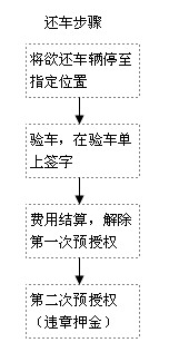 還車說明還車當日,請攜帶取車時的所有單證復件,將欲還車輛按時送達約定地點; 營運專員驗車后,請客戶在驗車單上簽字確認; |